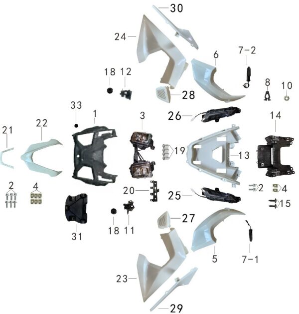 quantité de 29 - CARENAGE SUR LATERAL INFERIEUR AVANT GAUCHE - 3400139100001-07-A